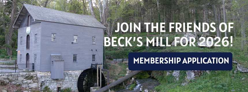 In 2008 Beck's Mill was returned in restored and operational condition to the directors of the Friends of Beck’s Mill, Inc. Beck’s Mill is operated solely by the efforts of an all volunteer staff and the leadership of Friends of Beck’s Mill, Inc. continues to enhance the visitor experience to Beck's Mill every year as numerous new events are planned every season.
